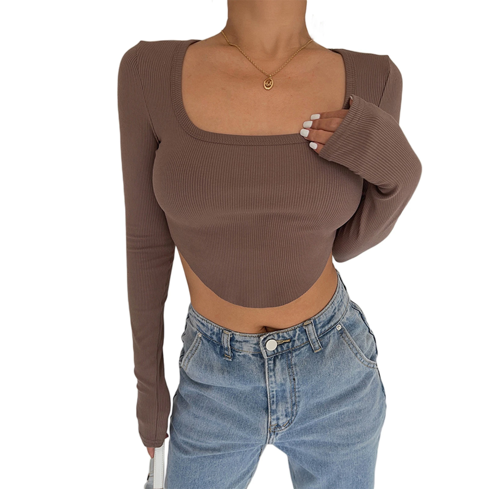 2021 New Simple Sexy Square Collar Irregular Knitted Tops Women Long Sleeve Solid Slim Fit Crop Top Holiday Casual T Shirt Tee T Shirts Aliexpress